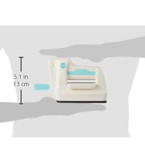 - ideal für den Basteltisch die Maschine ist so klein, dass sie wohl überall Platz findet: Maße: 14 cm breit (+ 7cm Kurbel), 12 cm hoch, 9,5 cm tief